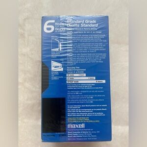 Maxell VHS tape with superior sound and picture quality. Standard grade for 6 hours of recording.