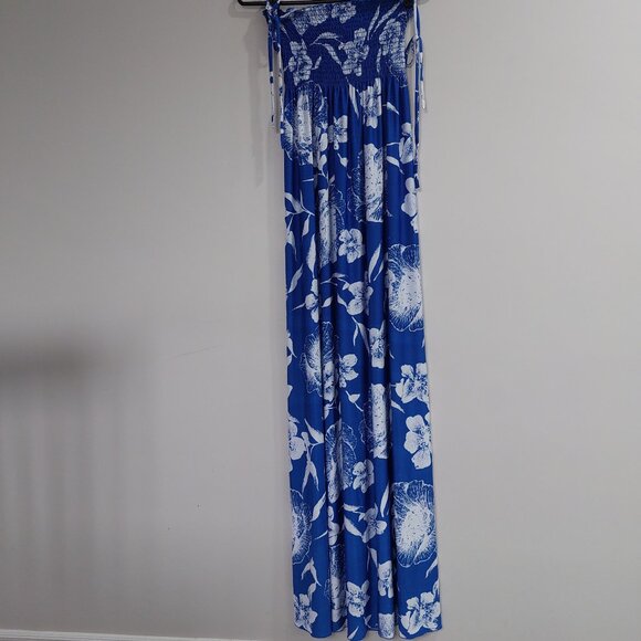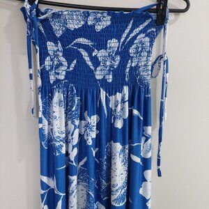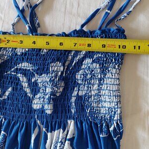 Smocked bodice and adjustable shoulder ties Maxi Beach Cover-Up Dress, Size S