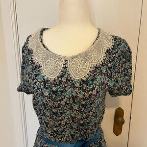 Maxi Cottagecore Floral Print Peter Pan Collar Dress