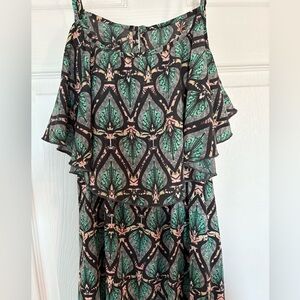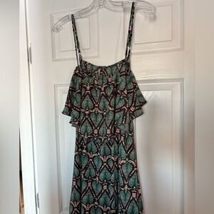This maxi is super cute and flattering with the tier top. It’s not lined but it’s not see through. Straps are adjustable. Open back. No size tag but wore it when I was a medium.