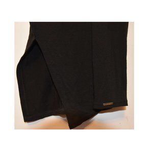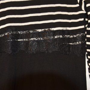 Asymmetric hem with a small side split. Beautiful lace detail at waist level.