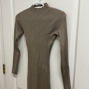 Maxi Mock Neck Sweater Dress with Slit | Size S Light Brown Excellent condition