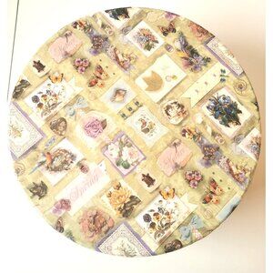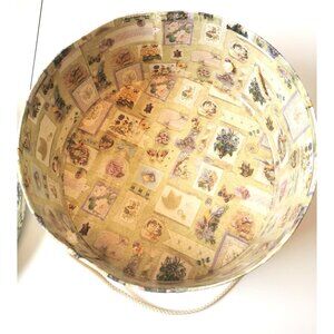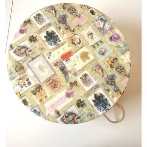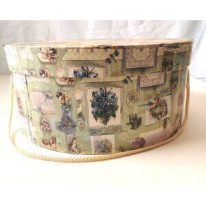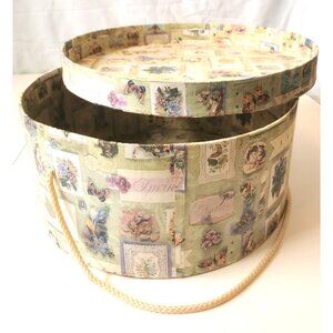 Maxi Size! Vtg Shabby Chic Hat Box Cardboard w/ Rope Handle, 15.25" Floral