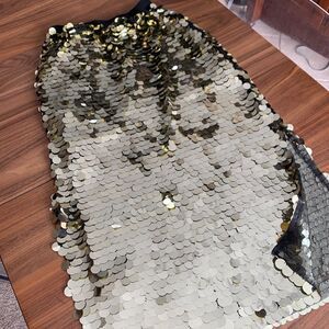 French Connection pull on, lined, fully sequined maxi pencil skirt in excellent used condition with no wear, damage or stains detected- appears unworn. When you want to steal the show, make a dramatic entrance in this fully sequined maxi skirt, with large scale sequins, pull on elastic waist to ensure comfortable fit and side slits from hem for sexy flash of leg. Size small with some stretch. Fully lined with netting and an additional cotton lining covers the body (butt) area. Sensational evening look for prom, theatre opening night, your most formal affairs or as a statement club look. Add a few finishing pieces from Our Closet (some suggestions shown, all listed and priced separately) and design your head turning look. The best of the unusual, for you, from Lemon Squeezy Shop🍋