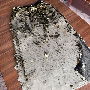 French Connection pull on, lined, fully sequined maxi pencil skirt in excellent used condition with no wear, damage or stains detected- appears unworn. When you want to steal the show, make a dramatic entrance in this fully sequined maxi skirt, with large scale sequins, pull on elastic waist to ensure comfortable fit and side slits from hem for sexy flash of leg. Size small with some stretch. Fully lined with netting and an additional cotton lining covers the body (butt) area. Sensational evening look for prom, theatre opening night, your most formal affairs or as a statement club look. Add a few finishing pieces from Our Closet (some suggestions shown, all listed and priced separately) and design your head turning look. The best of the unusual, for you, from Lemon Squeezy Shop🍋