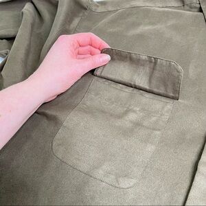 Maxini Collezione Brown Green 100% Ultra Suede Pocket Long Sleeve Dress Shirt