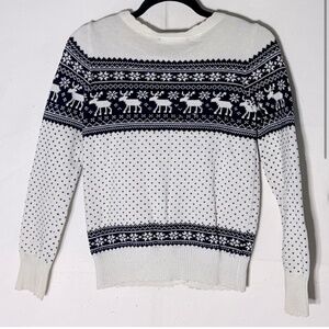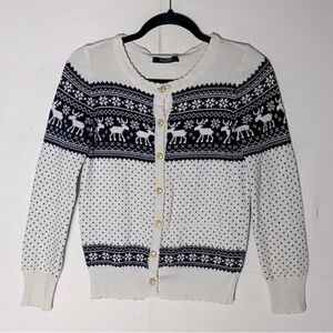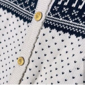 Maxmid Cream Navy Jacquard Moose Print Fair Isle Button Up Knit Cardigan S