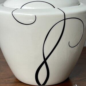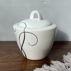 Description 🤍🖤 Sugar bowl by Maxwell & Williams, Breeze collection. Wavy black lines curl, creating an unobtrusive but sophisticated motif.