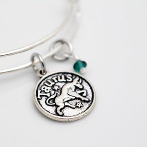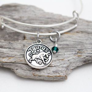 May Taurus Adjustable Charm Bangle - Handmade Zodiac Bracelet