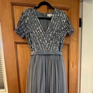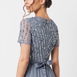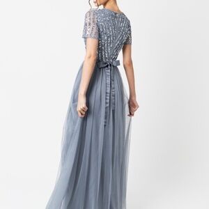Maya Dusty Blue Stripe Embellished Maxi Dress With Sash Belt (Bridesmaid)