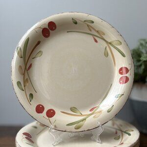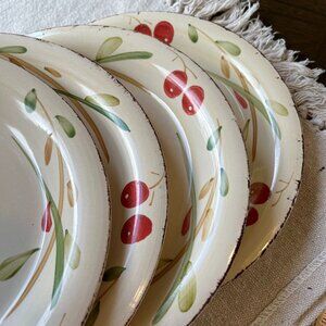 Mayfair & Jackson Stoneware 4 Dinner Plates 10.5" Red Berries Olives