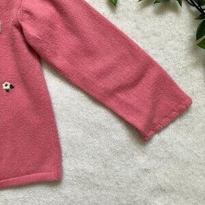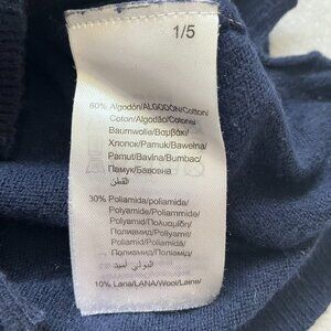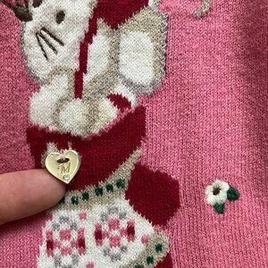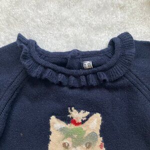 Mayoral toddler baby sweater, size 12 months. 60% cotton, 30% polyamide, 10% wool. Pink sweater with mouse and stocking holiday graphic; bonus navy blue sweater with cute dog design. Both are soft knit fabrics, with button-back closures, and cozy fit. Perfect for holiday photos, winter layering over dresses, or adding festive charm to chilly December days!