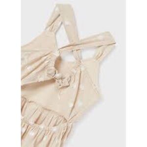 This sleeveless sundress by Mayoral features a charming ruffled high-low hemline, perfect for casual outings. The cream color and square neckline add a touch of elegance, while the light and airy fabric ensures comfort throughout the day.