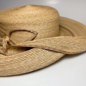 Mayser Germany Womens Medium Elegant Large Brim Straw Handmade Natural Tan Hat