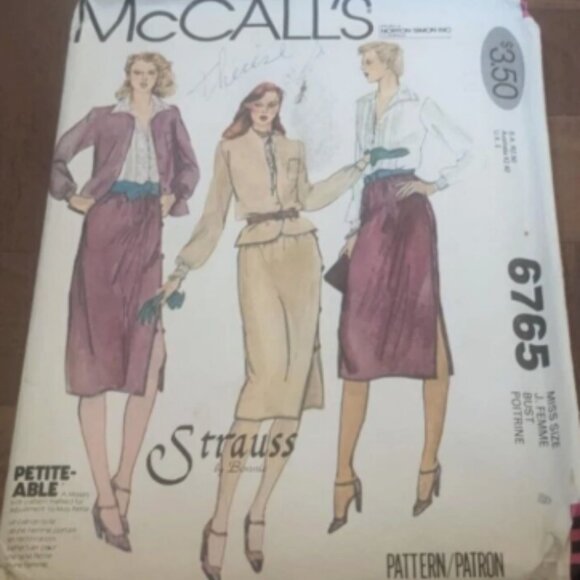 McCALL'S 6765 Vintage Sewing Pattern Misses' Jacket, Skirt and Blouse, Strauss
