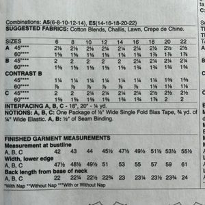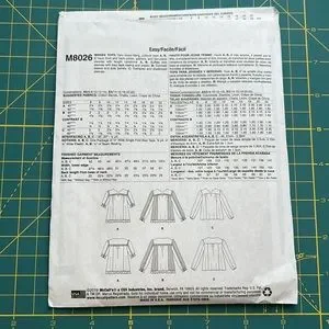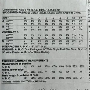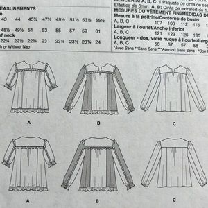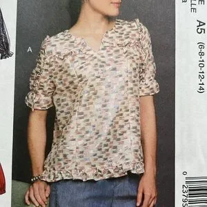 Top loose fitting, pull over style. Front and back yolks, gathers, and two piece sleeves with length variations.