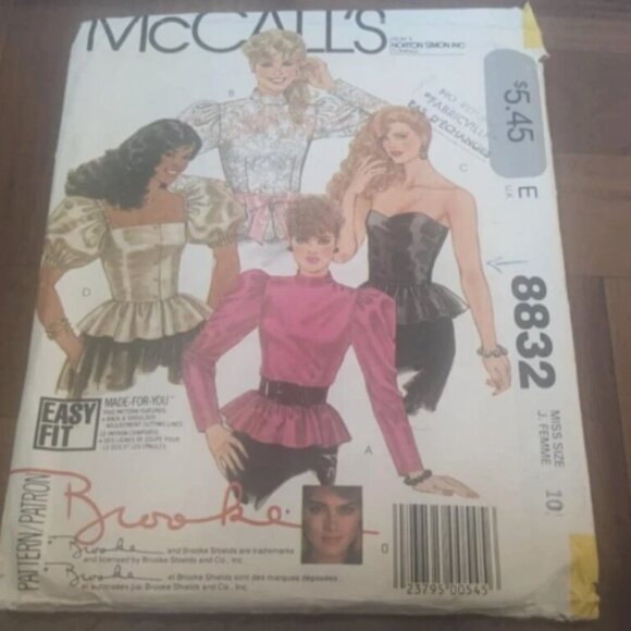 McCall's 8832 Misses Top in 4 Styles Brooke Shields Design 1983 Pattern sz 10 Size 10 1983