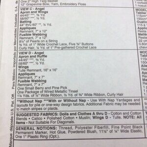 Pattern Info: Please See Photos of Back for Fabric and Notions Requirements.