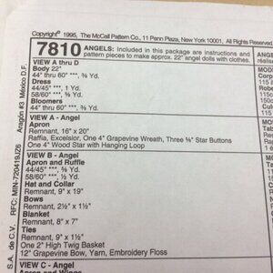 Seasonal holiday decor for the crafty sewer. McCall's pattern 7810 is for making 22" angel dolls with clothes. Options for Christmas, Thanksgiving, 4th of July and Valentine's Day.