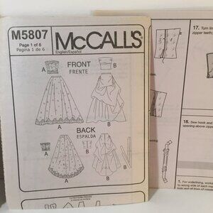 McCall's Sewing Pattern Size 14 16 18 20 Wedding Dress Formal Wear Gown Uncut