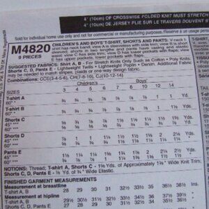 Uncut McCall's Kids Stuff sewing pattern M4820. Variations for boys gym clothes, t-shirt or tank top, shorts or pants. Sizes 10 to 14. Printed in 2005. Recommended fabrics include cotton, poly knits, and light weight twills.