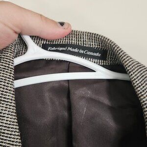 Features: Double front button closure / 3 front pockets / 3 interior pickets / Collar / Three buttons at wrists/ Padded Shoulders/ Made in Canada