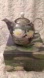Gorgeous unused teapot/cup set designed to nestle together as one for a lovely decor piece!