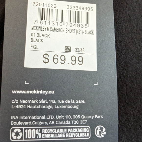 McKinley Men's Cameron Shorts Size 32 Black. New with tags