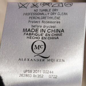 This coat from McQ Alexander McQueen's 2011 Autumn and Winter collection is crafted in a black wool blend, and is fixed with brass-tone zippers on the shoulders and waist to play around with the silhouette. It features long sleeves, buttoned cuffs, a V-shaped neckline, a peak lapel collar, a single hook closure, double-breasted decorative buttons, a tail hem, and is lined in a cream cotton blend.