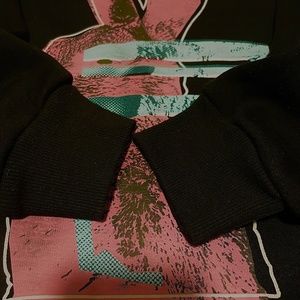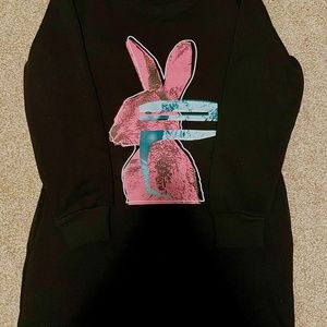 Excellent condition, worn only once, made in Italy, crewneck, long sleeve, ribbed collar, cuffs and hem, printed graphic at front, pockets, featuring trademark bunny.