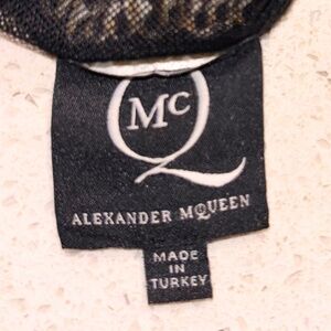 Make a bold statement with this iconic McQ by Alexander McQueen vintage bodycon dress. Featuring a striking gold safety pin print on a sleek black background, this dress is a true representation of the brand's rebellious and avant-garde aesthetic. In excellent vintage condition.