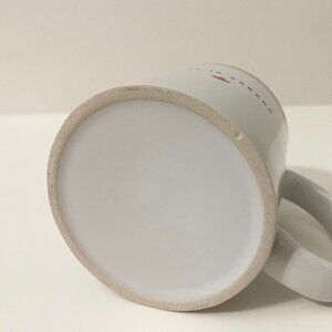 This mug is pre-owned and in used condition. There is a small chip on the base of it. There is some paint wear, marks and scratches on it. Please see all photos for exact mug.