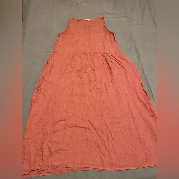 Me & Gee salmon pink long linen dress, size L Has pockets! No flaws!!