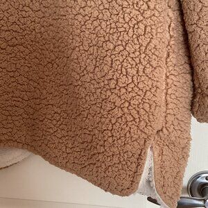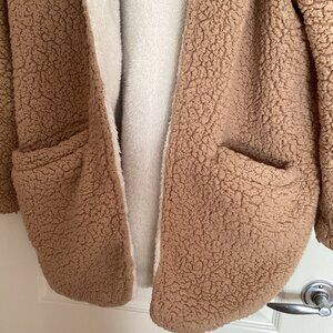 Me Jane Women's Open Front Cozy Teddy Jacket Coat Size S/P Pockets Hooded 1960's Style Sherpa Fleece Y2K