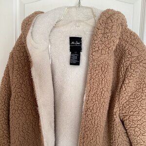 Me Jane Women's Open Front Teddy Jacket Coat Size S/P Hooded Sherpa Fleece Y2K