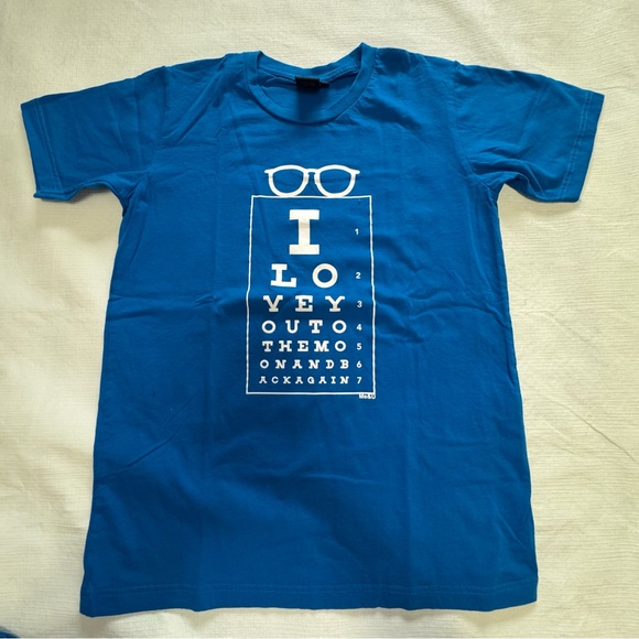 This playful blue t-shirt features a fun eye chart graphic, perfect for your child's everyday adventures. Comfortable and stylish, it's a great addition to any wardrobe.