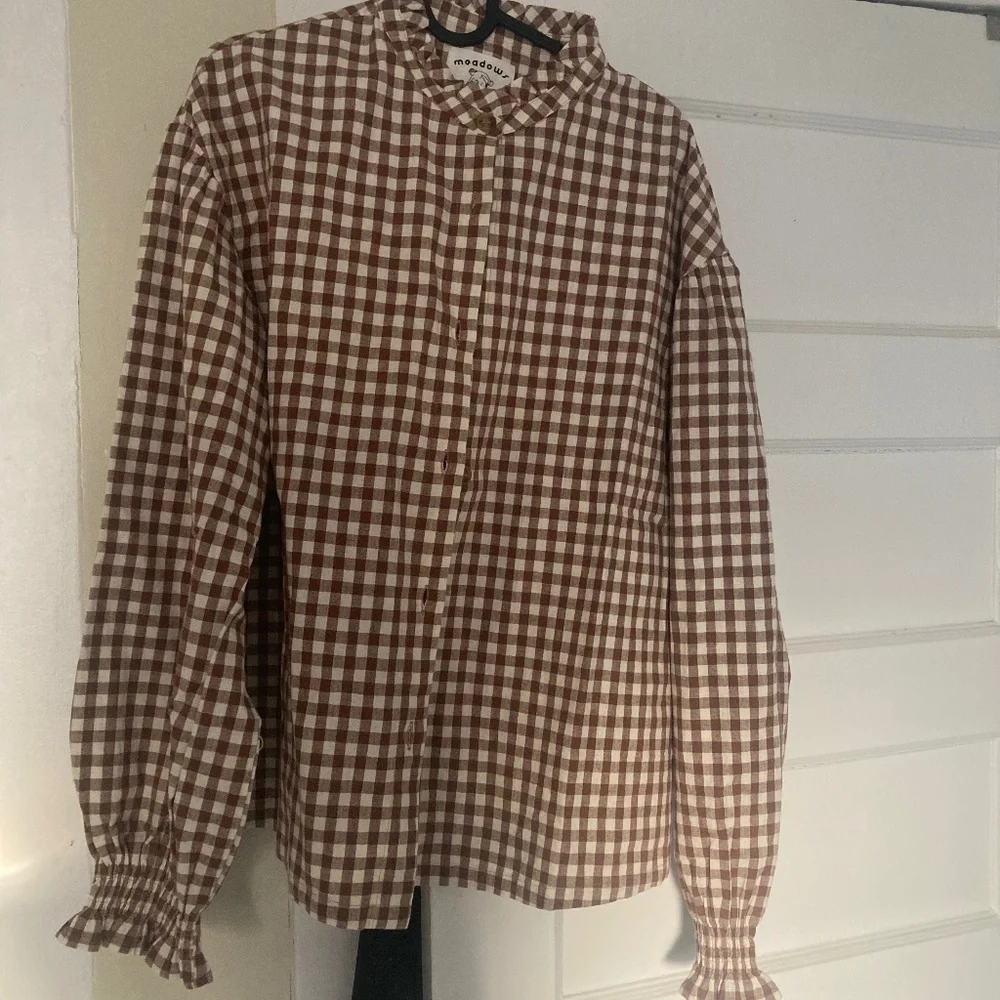Cotton / Linen gingham blouse from the UK brand Meadows. Meadows stopped making clothing this year! I really wanted to get a blouse before they are scarce. Unfortunately I ordered online and the size isn’t right for me. Please let me know if you have any questions.