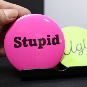 Vintage Metal Buttons. Stupid & Ugly, mean girl buttons. 75mm