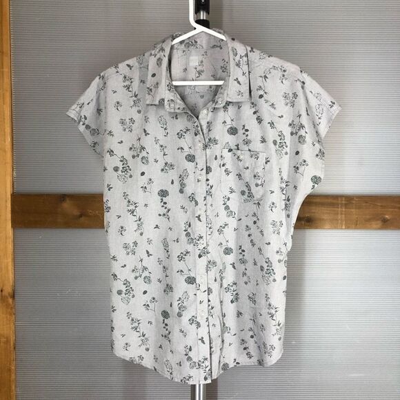 MEC Grey Drop Shoulder Floral Button Up Blouse Sz L