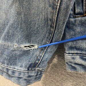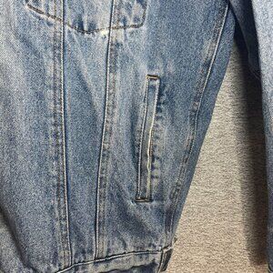 Mecca Jeans Co Denim Jacket Womens Medium Blue Button Up Distressed Faded