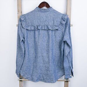 Med LEVI's Western Ruffle Cotton-Linen Denim Button Down Shirt