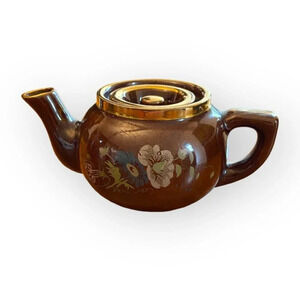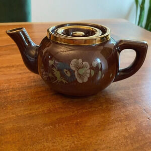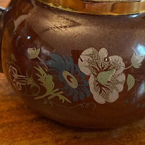 Medalta Rare Antique/Vintage Teapot with floral design in brown and gold trim