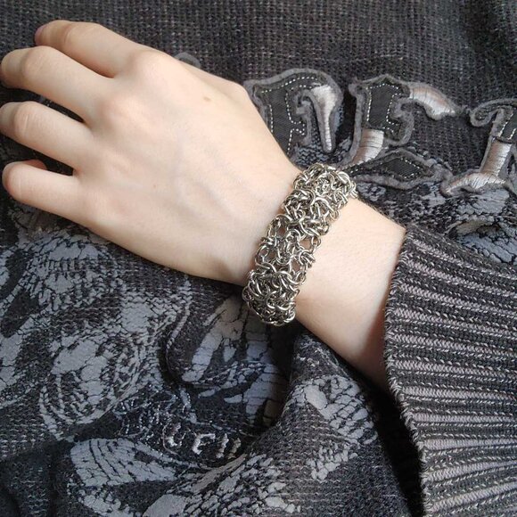 Medieval Gothic Grunge chunky silver chainmail bracelet