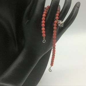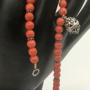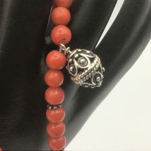 Mediterranean Red Coral Bracelet w Silver 925 charm beads and spring Clasp