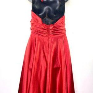 Medium Elegant Party Fiesta classic Red Satin Scarlet Halter Maxi Dress