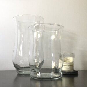 Very good preowned condition, medium-sized glass bulb/floor flower vase. Transparent with no colour. Fairly weighty. Selling a larger vase that matches. Bundle for less.