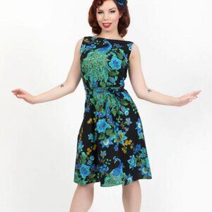 Medium Heart of Haute Monique Peacock Retro Rockabilly A-Line Dress Modcloth