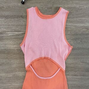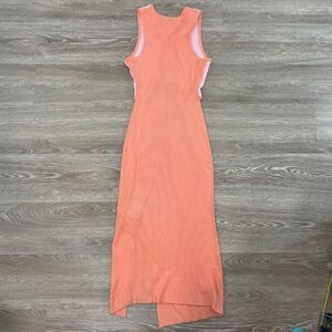 Medium Peach Pink Ribbed Knit Open Belly Dress Slim Fit Midi Summer Dress