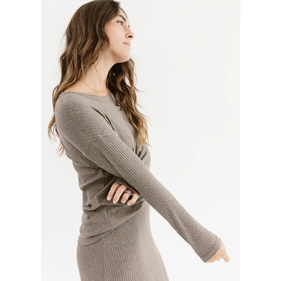 Elevate your wardrobe with this chic taupe ribbed knit skirt set. Designed for style and comfort, it's perfect for any occasion.