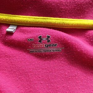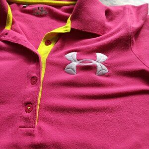 Medium Under Armour Logo Polo Shirt Womens Pink HeatGear Short Sleeve Collared